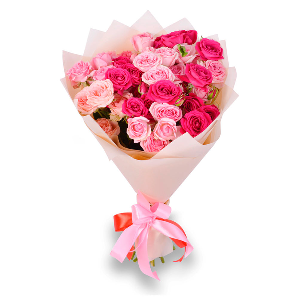 На фото представлен образец. Объем букета зависит от выбранного вами размера. Точное количество цветов и цветовую гамму вы можете уточнить у менеджера по телефону.